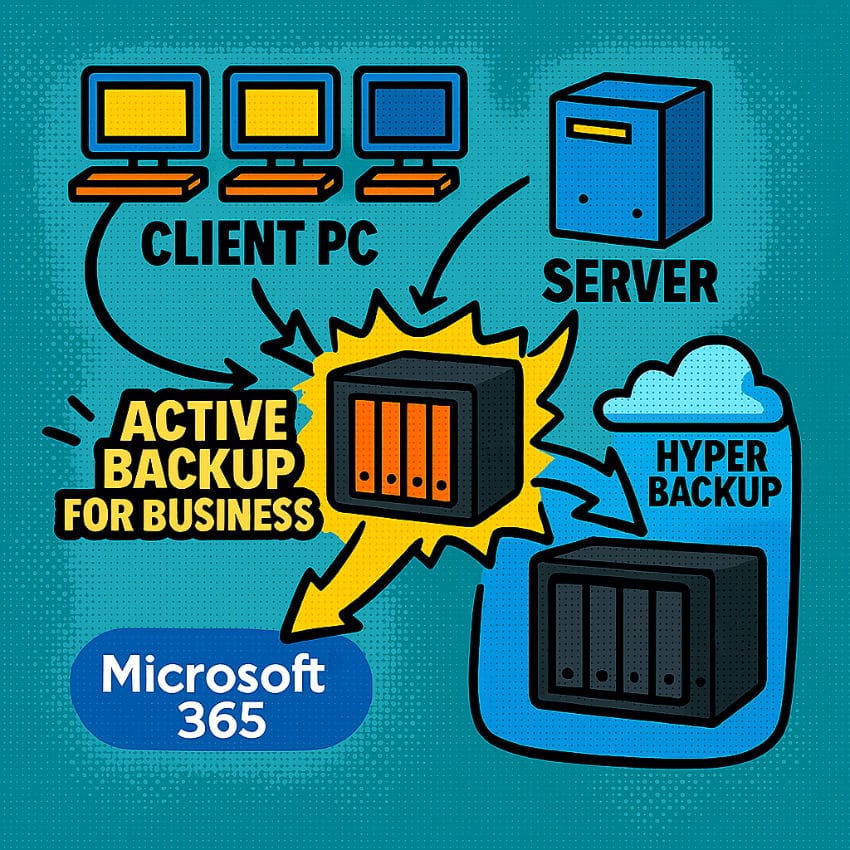 Gerade für kleine und mittelständische Unternehmen bieten sich NAS-Systeme von Synology an, weil sie ein One-Stop-Shop für Backups sind und neben Hardware mit Active Backup for Business eine zuverlässige, lizenzfreie Backup-Software direkt mitbringen. Außerdem sind sie schnell eingerichtet, brauchen nicht viel Strom und laufen zuverlässig.