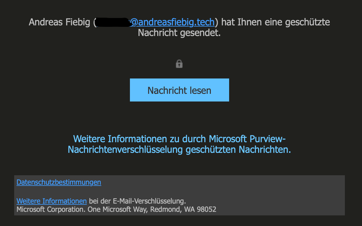Tut er das, so kann er mit Purview Message Encryption mit sehr geringem Aufwand eine leicht zu bedienende Mailverschlüsselung erhalten, deren Vertrauenswürdigkeit vermutlich für die meisten Anwendungsfälle völlig ausreicht. Insbesondere für den alltäglichen Geschäftsbetrieb ohne besondere Compliance-Anforderungen.