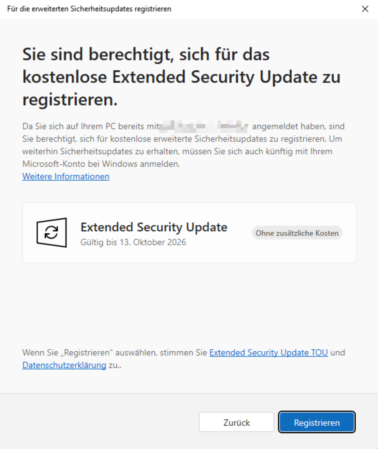 Extended Security Updates (ESU) bis 13. Oktober 2026 für Windows 10 aktivieren